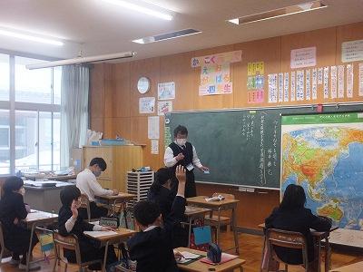 はじめに5年生の部。英語の先生とのやりとりです。名前や誕生日を伝えた後、