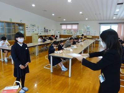 給食委員からの説明を聞いた後、さざえ漁のDVDを視聴しつつ いただきました。