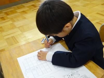 【1年算数】イチゴを並べたり図に色を塗ったりしながら、数の勉強をしました。
