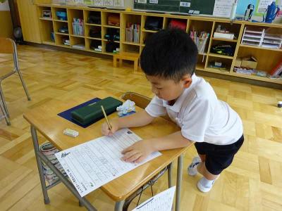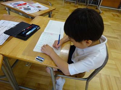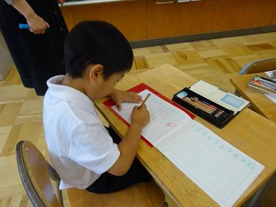 【1年国語】ひらがなの学習 なぞり書きしたり空中で書いたりしながら、形をとらえました。