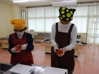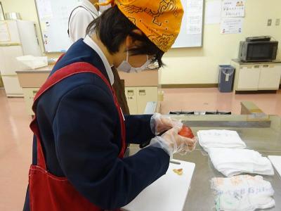 【5年家庭科】リンゴの皮むきをしました。慎重に包丁を使って実習しました。