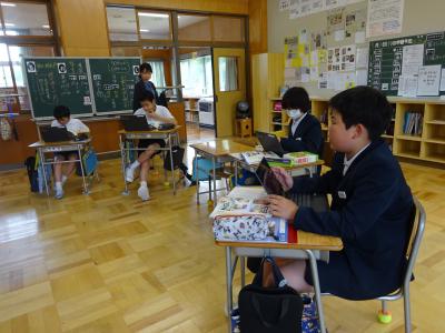 【学校係活動】放送と図書のお仕事を3から6年生が担っています。各係で活動計画を立てました。高学年は、3年生にやさしくお仕事の方法を教えてくれました。3年生も、やる気満々です!