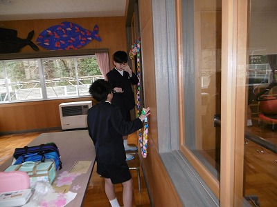 入学式の前日は、1年生を迎えるために5・6年生が準備をしました。