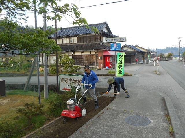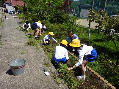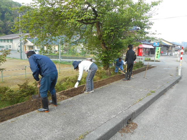 花の苗植えに備えて、PTA環境部の皆様が花壇の整備をしてくれました。おかげさまで大変きれいになりました。早朝より整備していただき誠にありがとうございました。