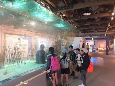 海洋ふれあいセンターで海の生き物を見たり、さわったり