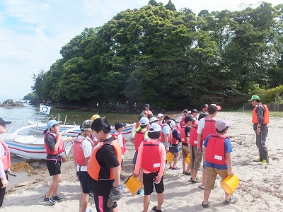 到着した浜で、水生生物の観察