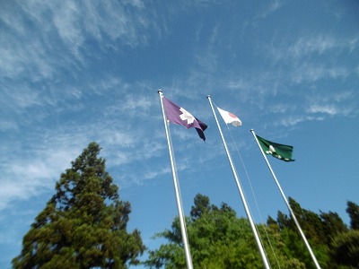 青空にはためく刈安、笠野の校旗