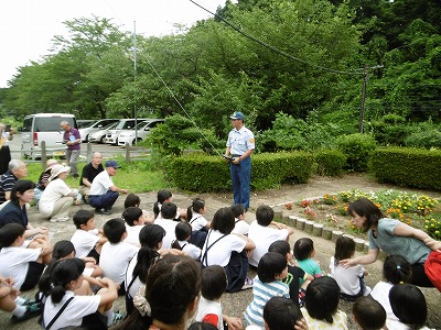 倶利伽羅駅についてから津幡町消防本部の方と防災ボランティア会の方のお話を聞きました。みんな真剣に耳を傾けていました。