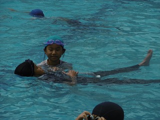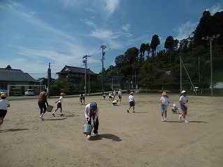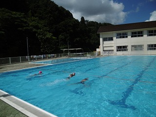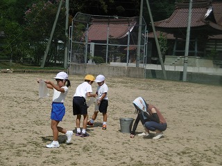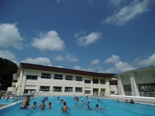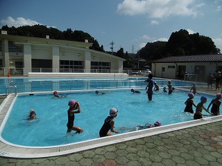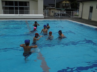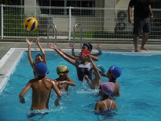 低学年は宝さがしゲーム、高学年は水球をしました。