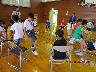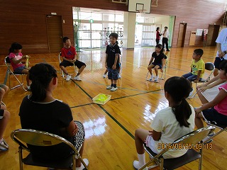 最初は体育館で自己紹介をしながらイス取りゲームをしました。