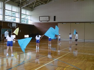 8月14日の寺尾祭りに向けて、全校で刈安ソーランを練習しました。