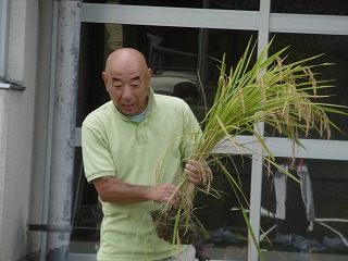 大粒の汗をかいて、一生懸命稲を刈っていました。