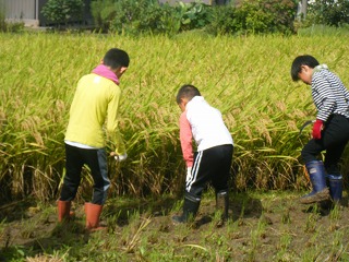 「稲刈りも、もう6年目なので・・」と頼もしく話していた6年生は