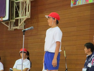 選手宣誓。指先までピンと伸びた手に力強さを感じます。