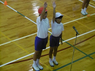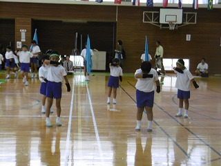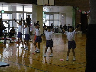 1~3年生は難しい振り付けを友達同士で確認しながら、自主練習していました。