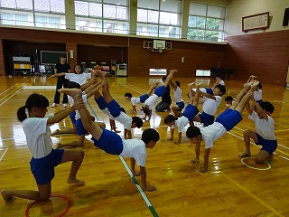 競技によってはルールを変えて行いましたが、室内のやり方にもうまく対応し、全ての演技・競技をやり遂げることができました。とりわけ6年生がいない今年度、5年生が最高学年として自覚をもって行動してくれました。