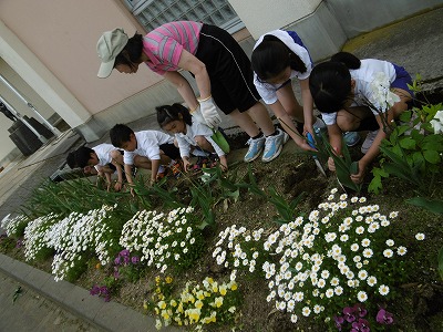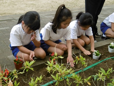 サルビア、ベゴニア、日々草をみんなで植えました。