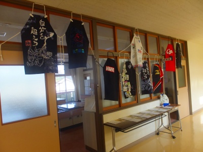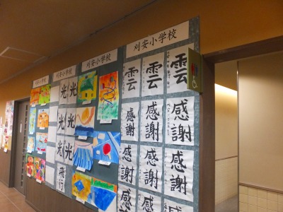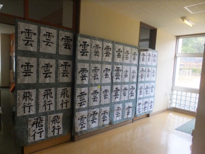 河北郡市の書写作品展、毛筆の部が、11/5まで刈安小の理科室前にて展示されています。