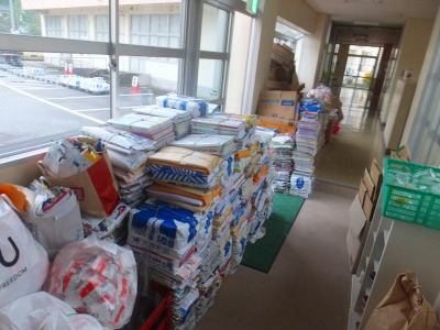 各地域から、たくさんの新聞、雑誌、空き瓶、雑紙、牛乳パック、エコキャップが集まりました。