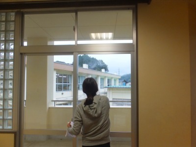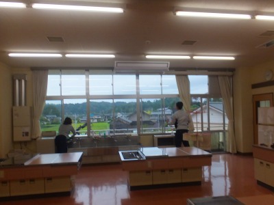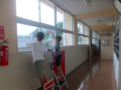 資源回収に引き続き、校舎の窓ふきもしていただきました。