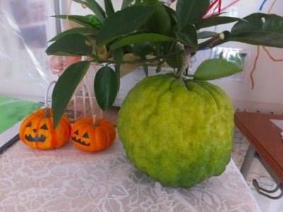 地域の方から、立派な立派な鬼柚を四個もいただきました。