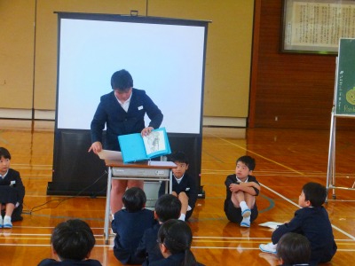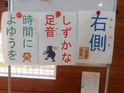生徒指導の先生からは、安全についてのお話をしました。忍者のようにしずかに。