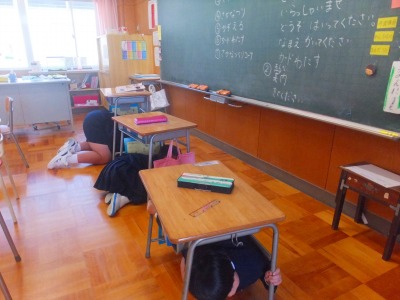 11/5 10時、緊急地震速報の音を使って、地震に対する訓練をしました。