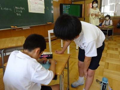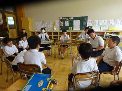 【なかよし遊びの計画】来週のなかよし遊びの計画を立てました。遊びの幅を広げたいと、5・6年生が外国の遊びを遊びを調べたりして、いろいろな遊びを提案してくれました。みんなで楽しめる遊びを縦割りグループで話し合いました。