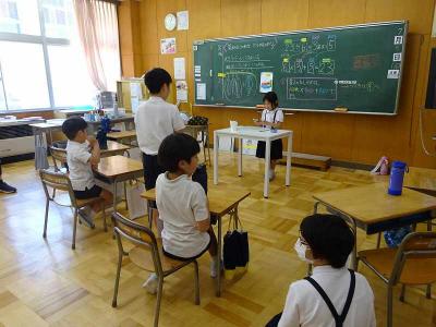【1・2年英語】英語の歌を元気に歌ったり、野菜の言い方を学習したりしました。