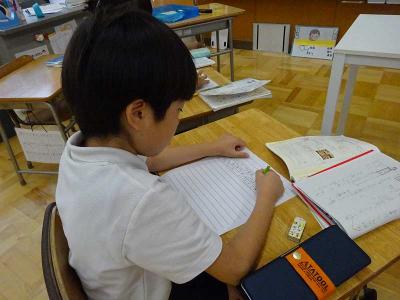 【2年国語】集中して清書をしています。書いた文を指でたどりながら、正しく書けているかを自分で確かめることができました。