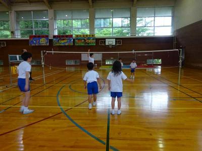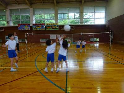 【体育】バレーボールに挑戦。声をかけながら、ボールをつなぎました。