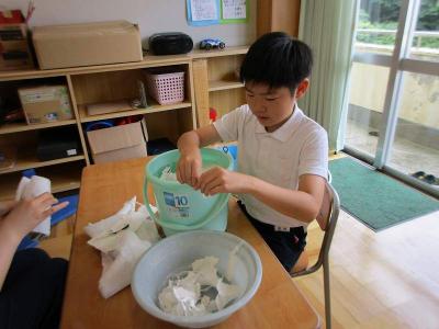 【あすなろ学級】牛乳パックで紙を作りました。ミキサーで細かくしたり、紙すき道具で紙を漉いたりして味わい深い紙を作りました。