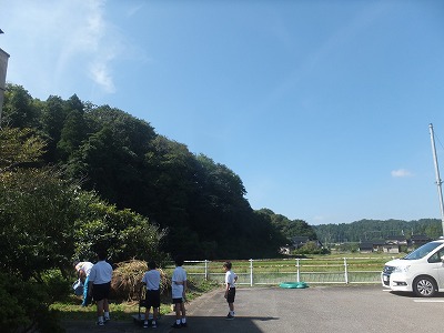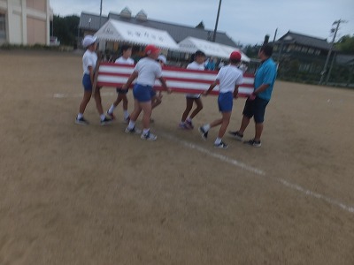 天候があやぶまれましたが、運動場で行うと決定し、七時から準備をしました。保護者の方々に助けていただきつつ、3,4,5,6年生が活躍です。