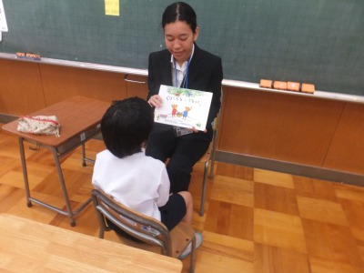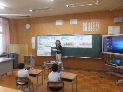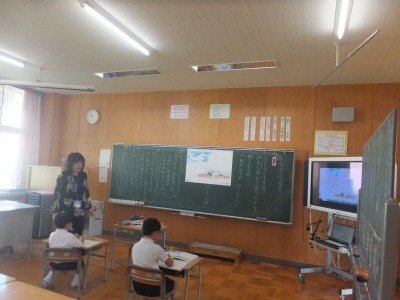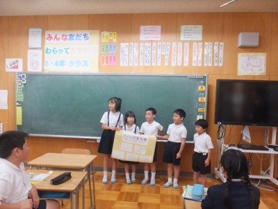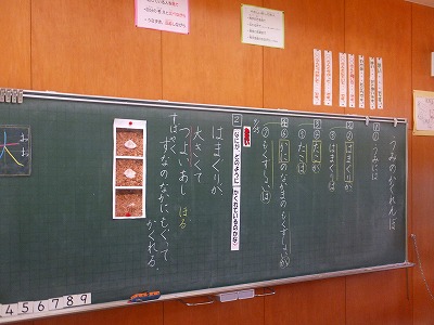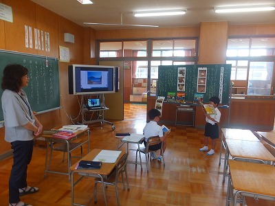 1年生が、国語「海のかくれんぼ」で学んだことを教室で発表しました。