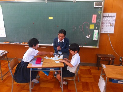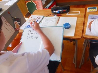 算数、5年生が、4年生に分かるように説明中です。
