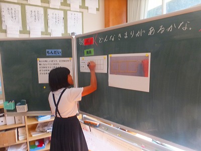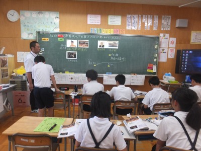 昨日、互いの授業の様子を児童同士が見合いました。そして、その折に学んだことを伝え合いました。