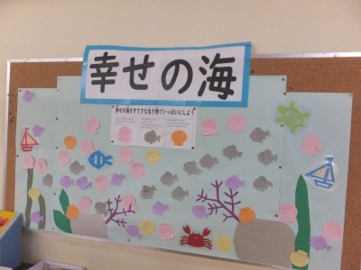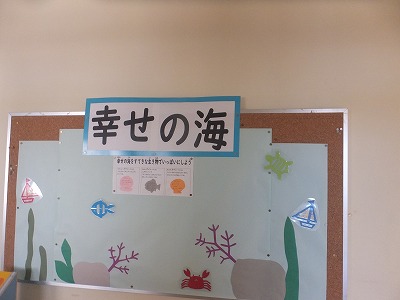 友達のよさをたくさん見つけて、みんなで「幸せの海」に生き物をいっぱいにしていきます。