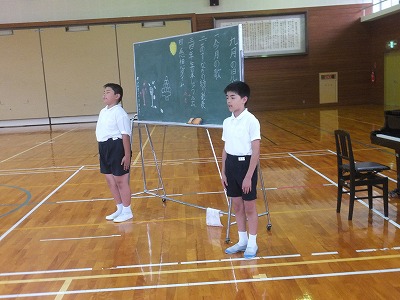 詩の音読発表がありました。三人で声をそろえ、すらすら発表できました。