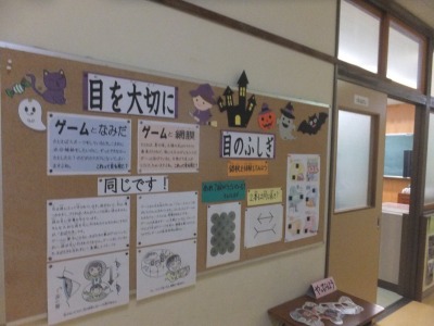 保健室前です。10月10日、目の愛護デーです。