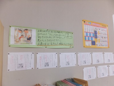 姿勢、発言の仕方、聞き方等、お互いの良いところをカードに書いて渡し、掲示しました。子どもたち同士の学び合いを大切にし、互いに高め合っていきます。