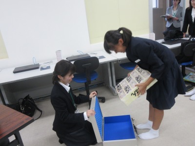 一億円のお札の重さを一人一人l体感させていただきました。(見本のお札ですが、どきどきです。)思わず、「うっ、重い。」
