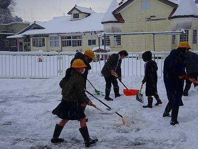 先生たちは、子どもたちが来る前に玄関前の除雪をしてくれていました。
