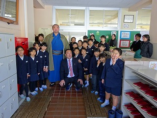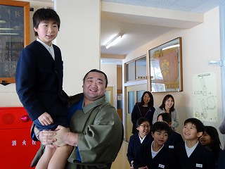 1月26日、珠洲市出身の幕下力士 宝龍山(ほうりゅうやま)が来校しました。