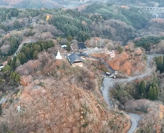 倶利伽羅古戦場上空から見る倶利伽羅不動寺です。