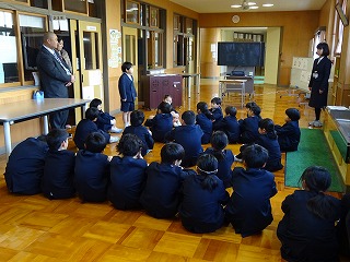 校長先生は、箱根駅伝で逆転優勝した東海大学のことを紹介され、こうなりたい自分を決めて、いのしし年の2019年をめあてに向かってどんどん進んでほしいと話されました。