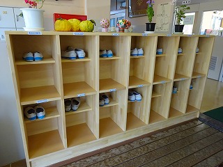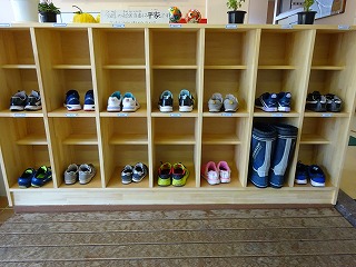 刈安小学校の下足入れは、幅も高さも小さくズックが入りにくいものでしたので、長靴でも十分入る大きさのものを冬を前に設置していただき大変喜んでいます。