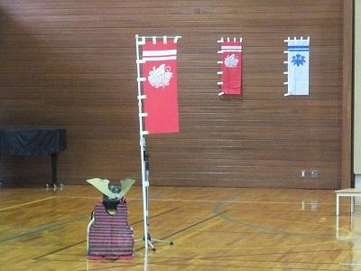 体育館にもいよいよ、源氏と平家の旗を飾り、気分を盛り上げてがんばっています。