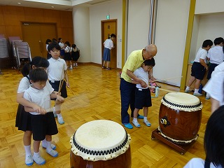 源氏太鼓保存会の皆様にご来校いただき、今年度も源氏太鼓の練習を行っています。