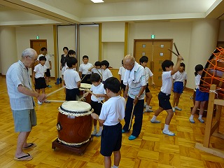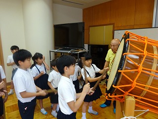 2年生は初めてです。保存会の方手をとって教えてくださいます。