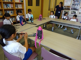 源氏太鼓は、倶利伽羅合戦の勝利を祝って打ち鳴らした勝利の太鼓が始まりと言われ、九折(つづらおり)地区の保存会の皆様が継承しています。刈安小学校では、昨年度より2年生以上の児童が、音楽や総合的な学習の時間の中で、地域の伝統文化にふれる活動の一環として行っています。今年度は、7月3日、10日、12日、17日の4回、刈安公民館のホールをお借りして行いました。
